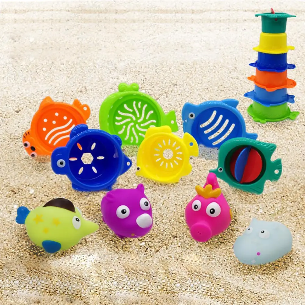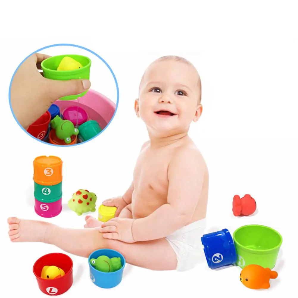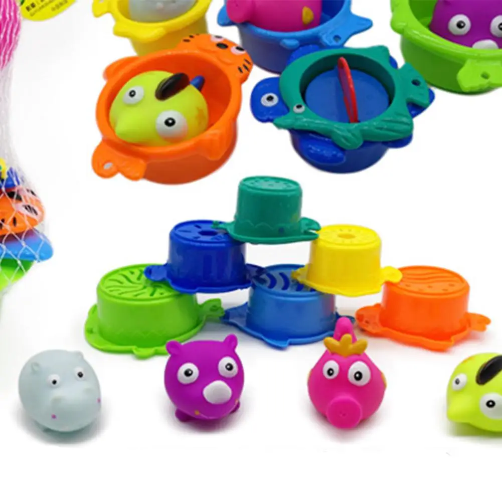 BEST QUALITY Kuulee Children Colored Stacking Bath Cups Educational Sea Animal Water Spray Toys Set for Kids