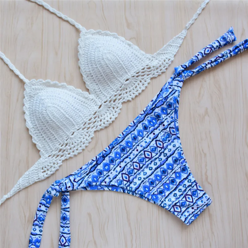 Sexy Crochet Bikini set Swimwear Women Halter Knitted Swimsuit Bathing Suit Brazilian Bikinis mujer