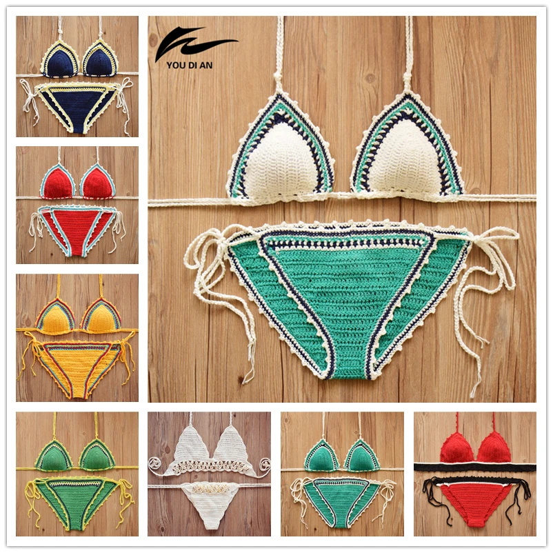 BEST Sexy Crochet Bikini set Swimwear Women Halter Knitted Swimsuit Bathing Suit Brazilian Bikinis mujer