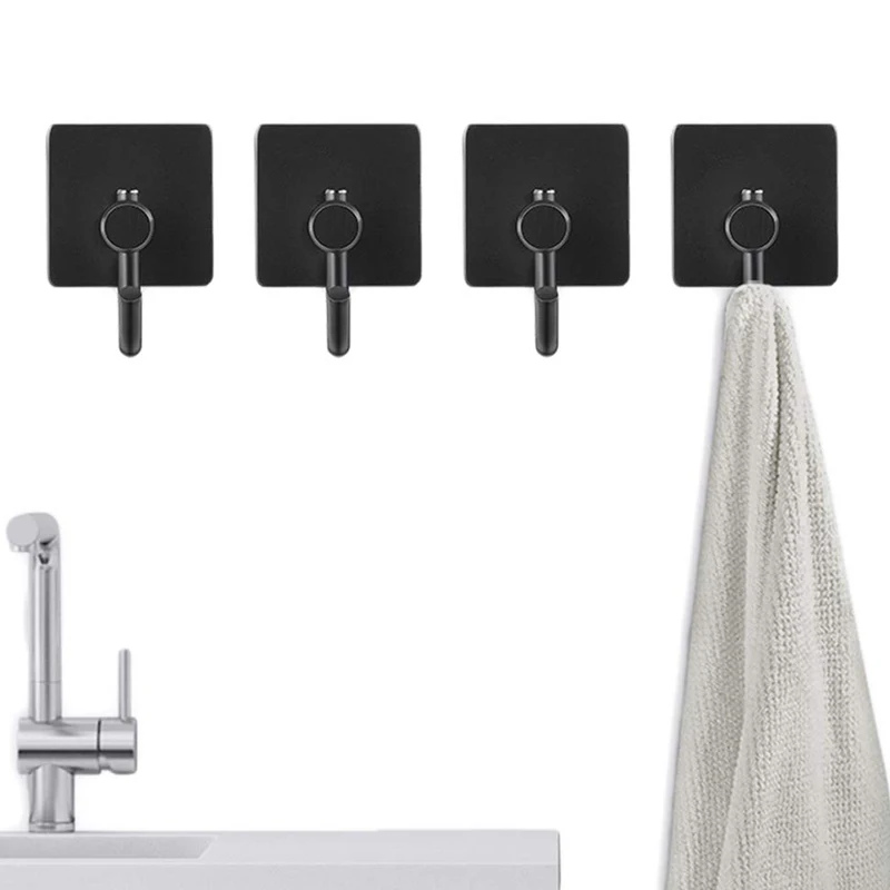 Black Self Adhesive Door Hook Bath Towel Hooks Stick on Wall Mount Hooks Hanging Robe Key Coat Supe