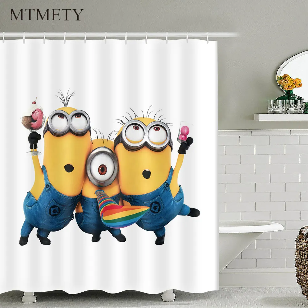 HOT Sale MTMETY Yellow Shower Curtains Mischievous Minions Series Shower Curtains Bath Curtain Polyester Wat