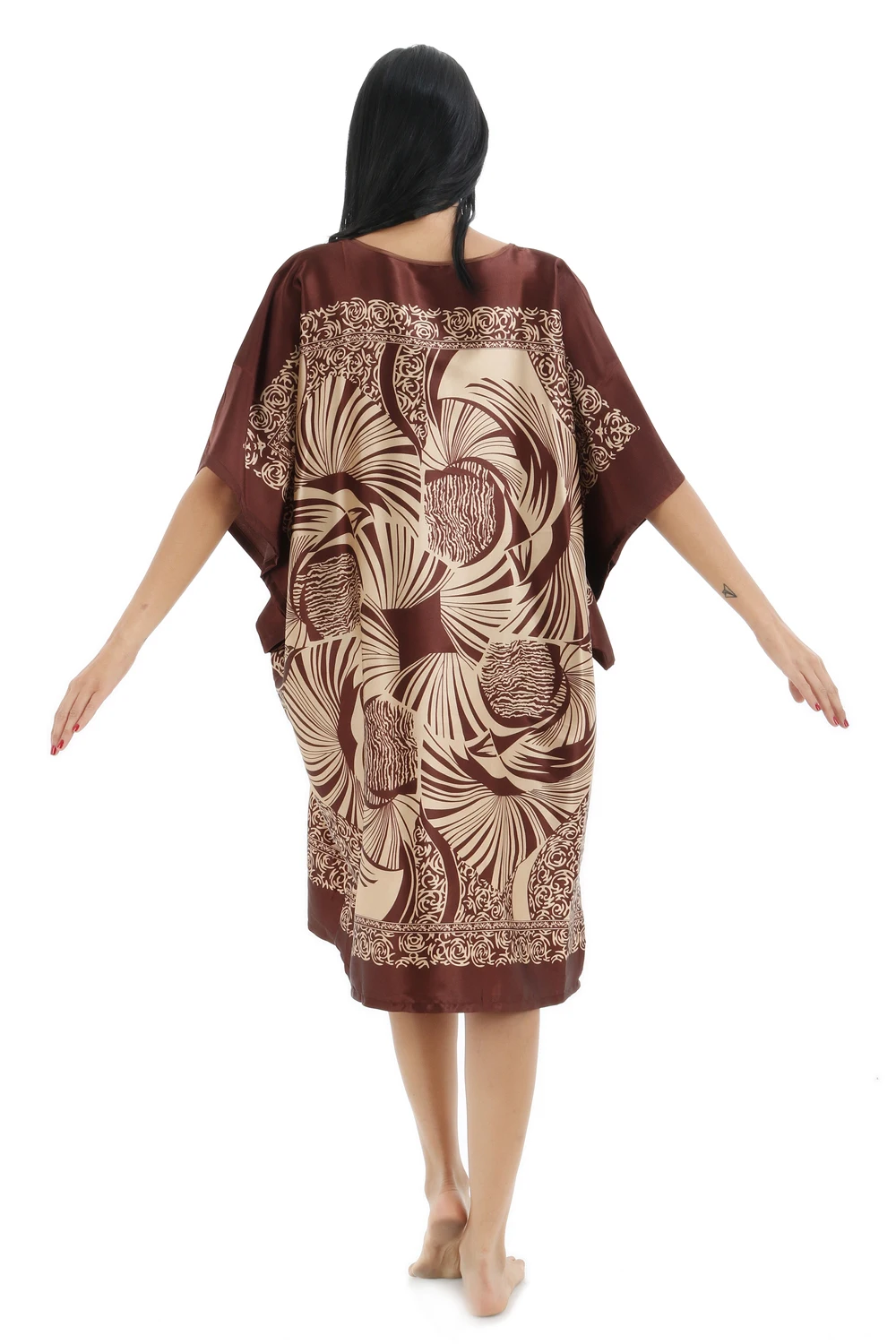 Best Seller Plus Size Fashion Female Robe Bath Gown Printed Design Blue Women's Faux Silk Nightdress Summer Nig