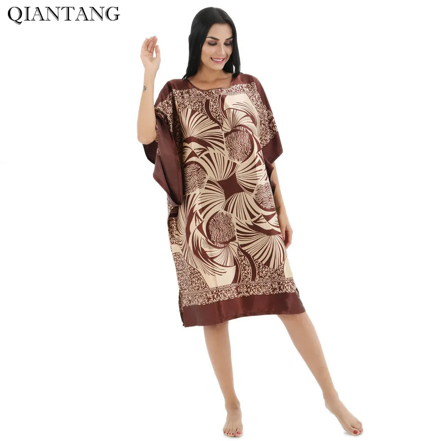 Plus Size Fashion Female Robe Bath Gown Printed Design Blue Women's Faux Silk Nightdress Summer Nig